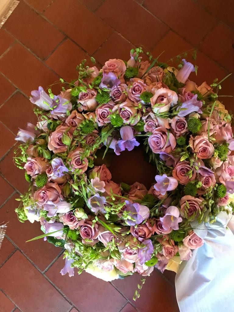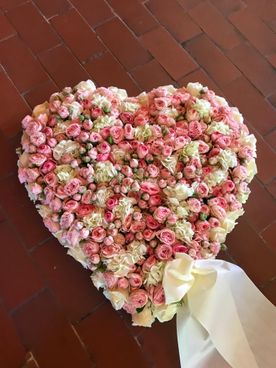 Wir fertigen für Sie den Sargschmuck, Kränze und Gestecke mit Schleifen in verschiedenen Farben.
